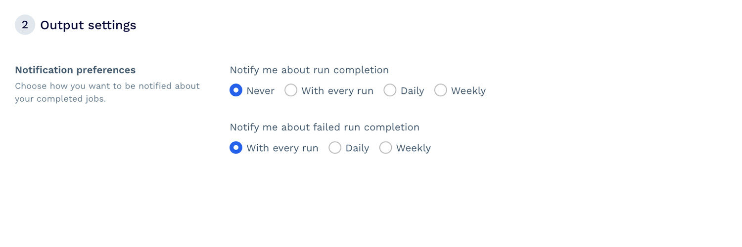Automatic data collection on up to 10K URLs. Schedule large-scale scraping projects without writing a single line of code.