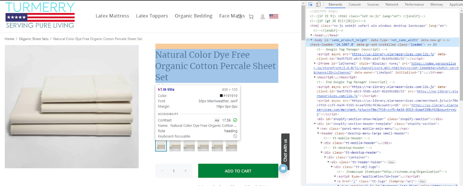 We’ll explore how to do each of these by gathering the price of an organic sheet set from Turmerry’s website.