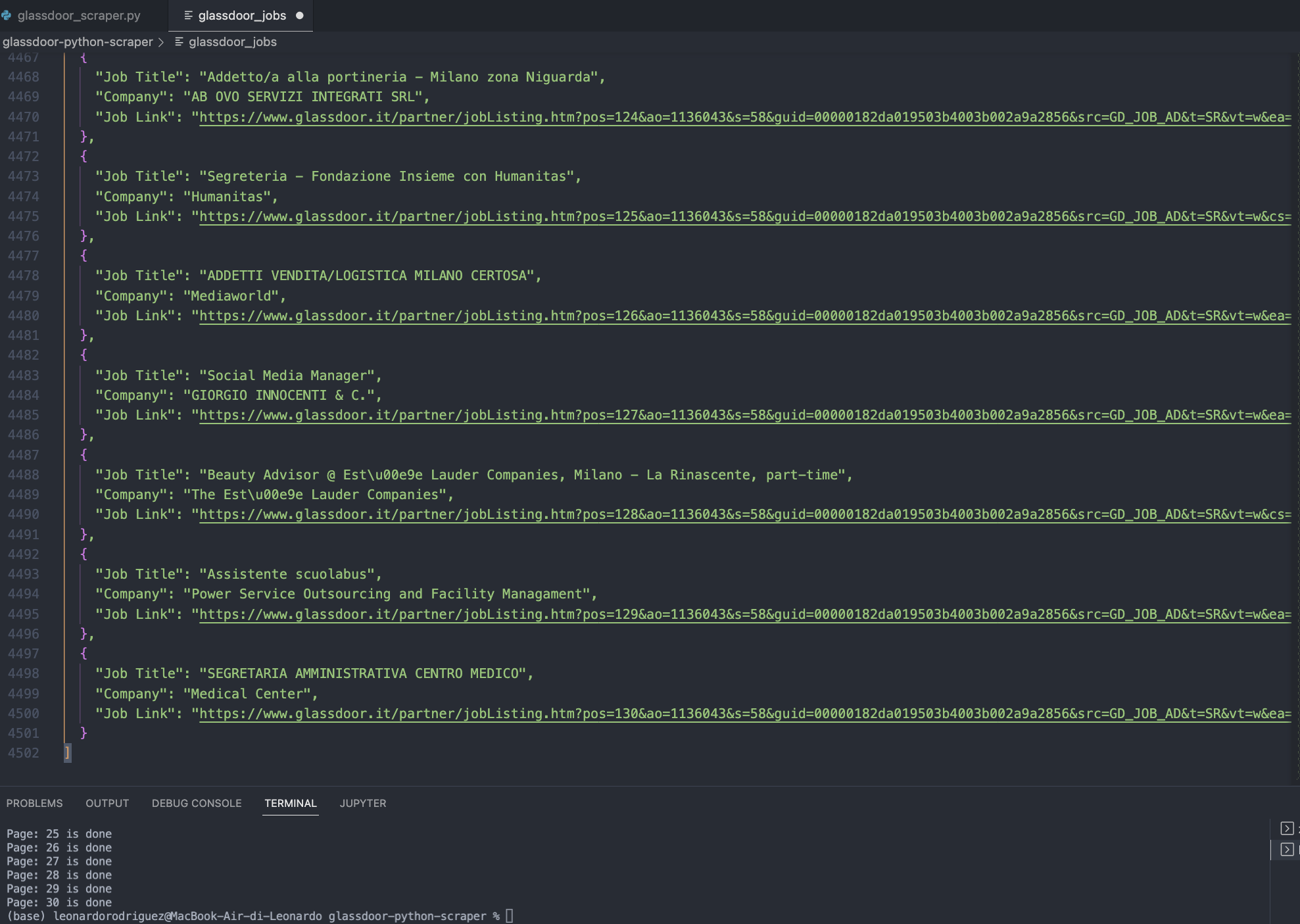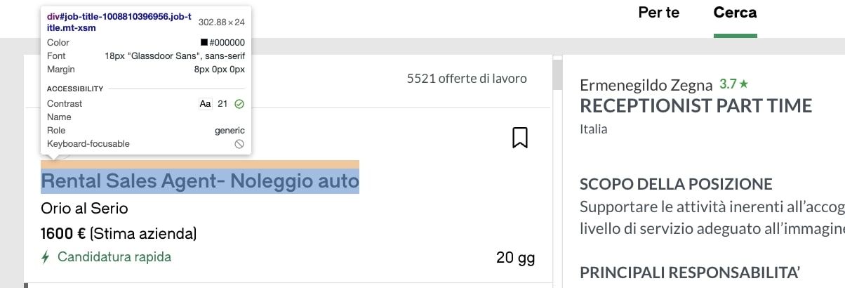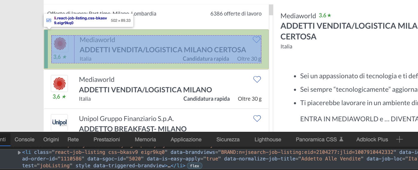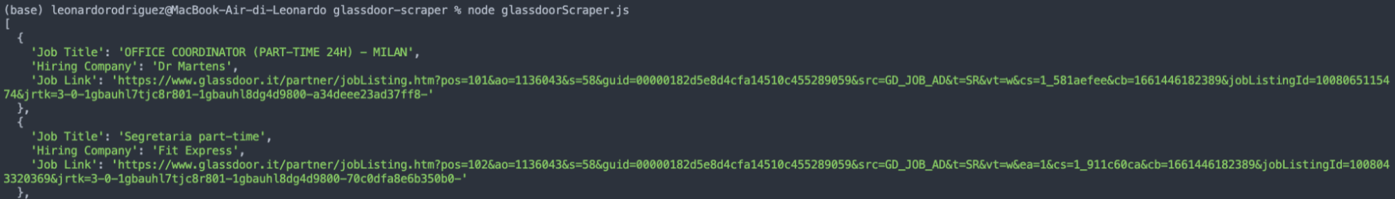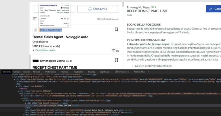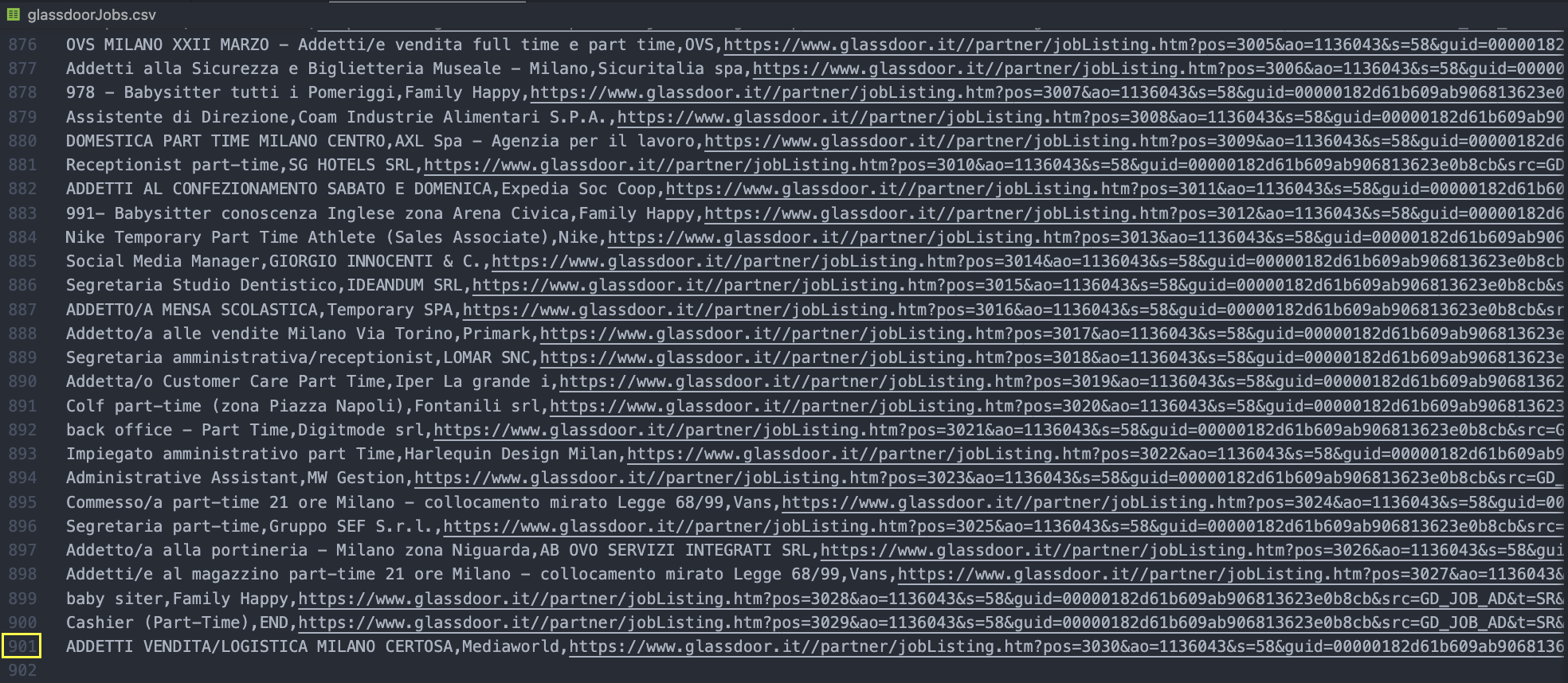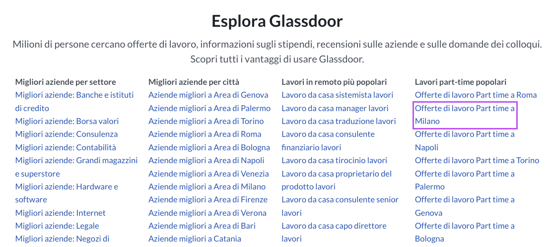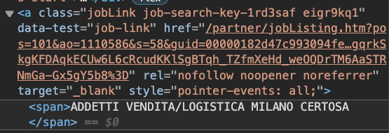 For this Glassdoor web scraping tutorial, we will extract Glassdoor’s part-time job opportunities in Milan to collect the job title, company hiring, and the link to the job posting at scale.