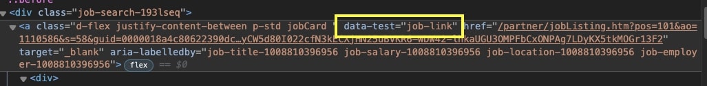 const jobLink = $(element).find("a[data-test='job-link']").attr("href");