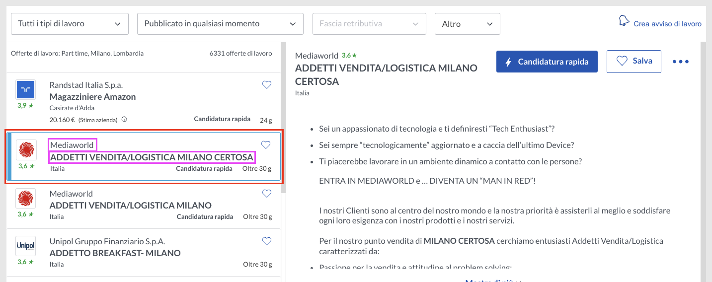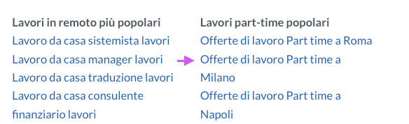 When clicking on the link “Offerte di lavoro Part time a Milano.”